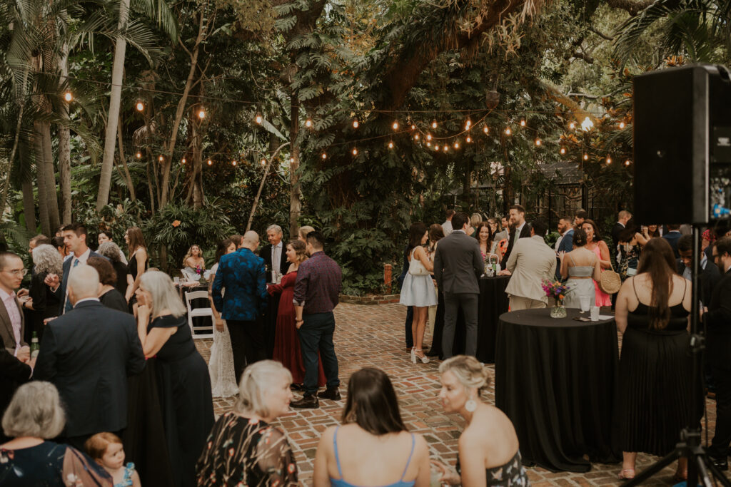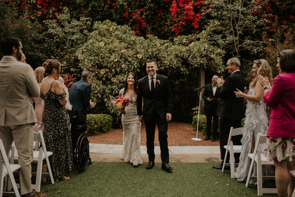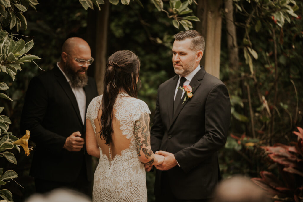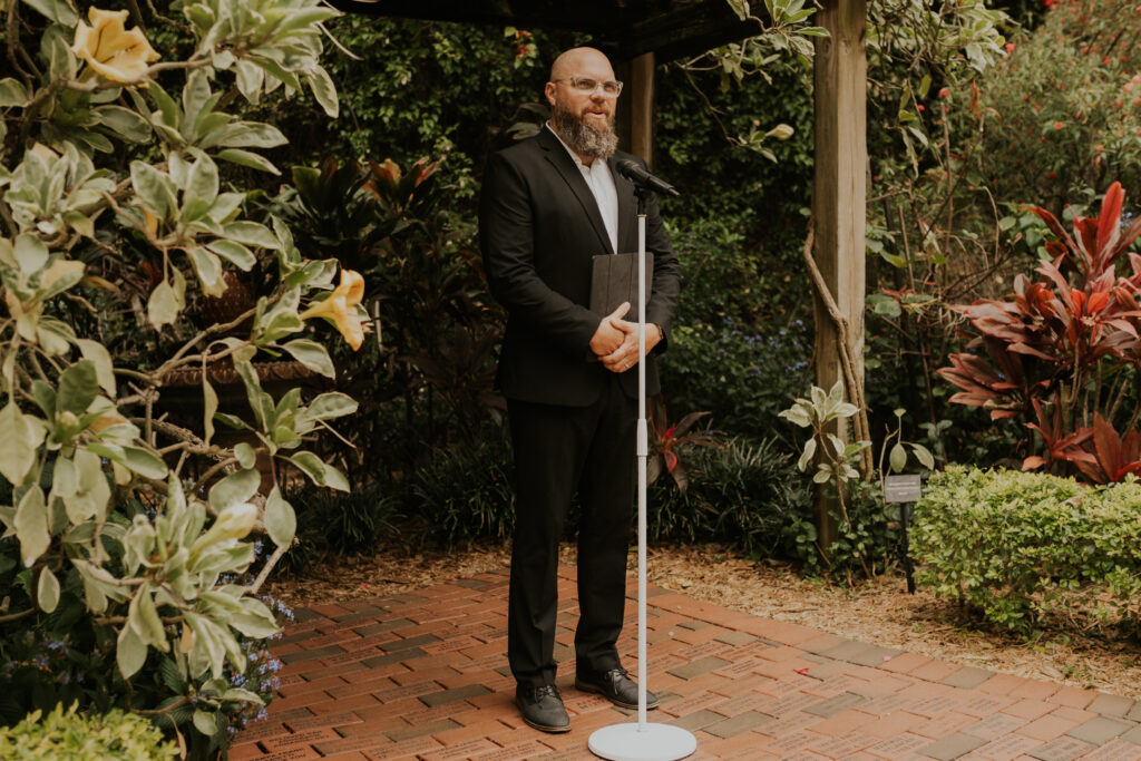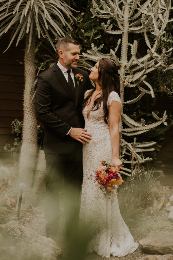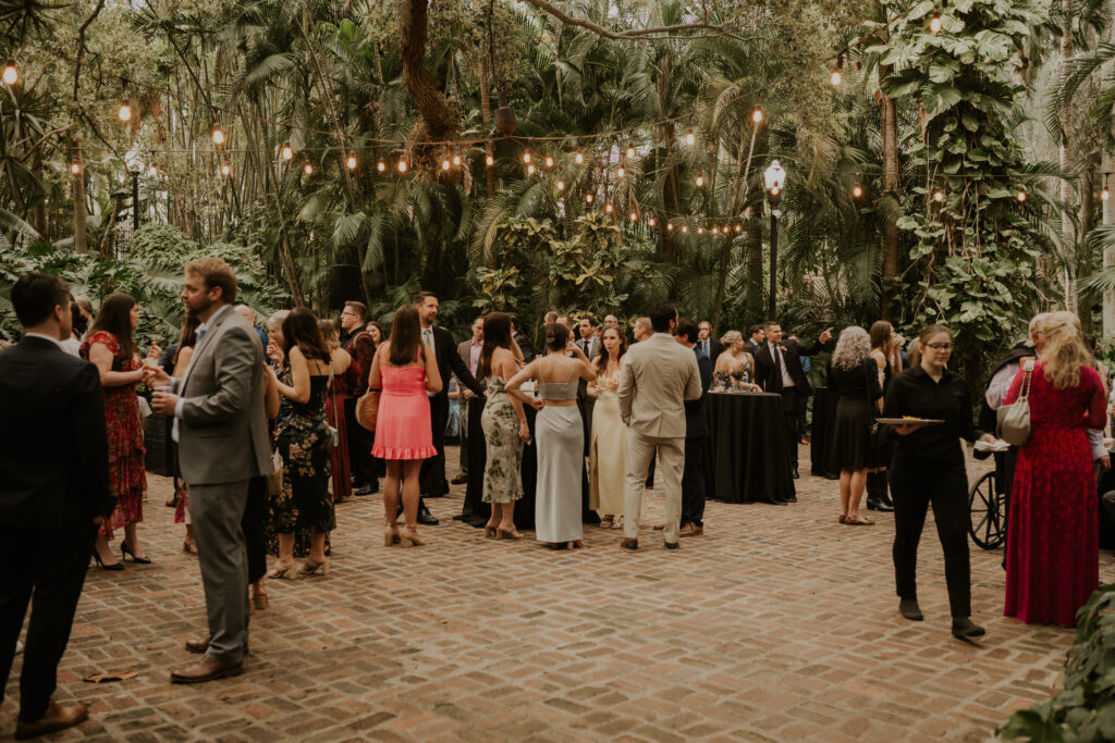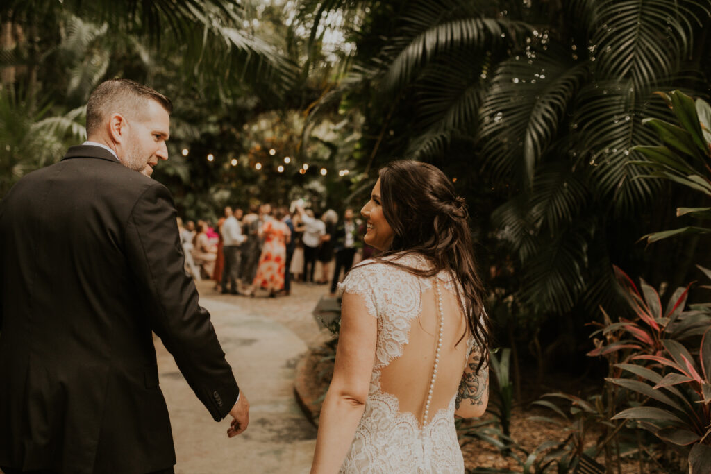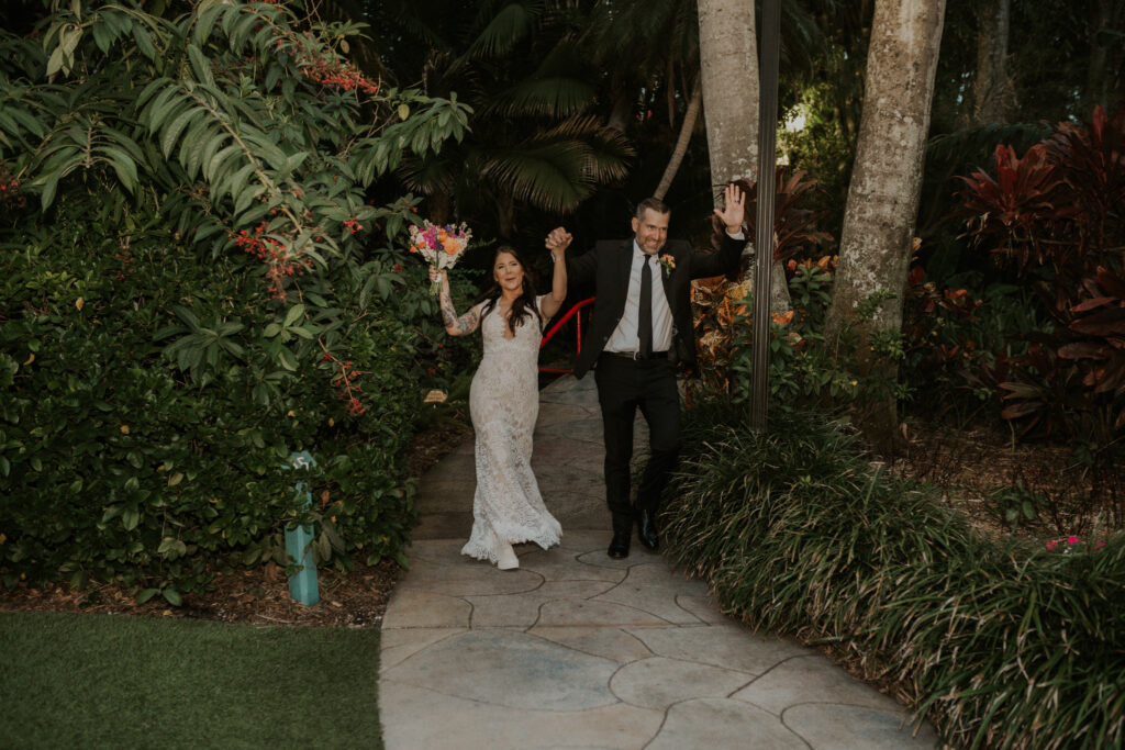 The day began under the towering palms and amidst the vibrant blooms of the Sunken Gardens. Renowned for its beauty and tranquility, this gorgeous venue offered an idyllic scene for Jessica and Chris as they exchanged their vows, perfectly encapsulating the essence of a garden wedding.