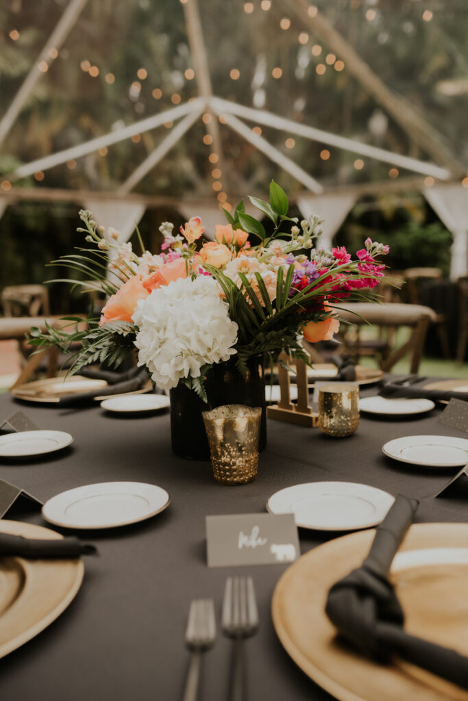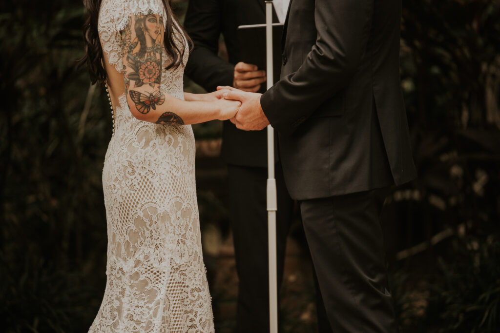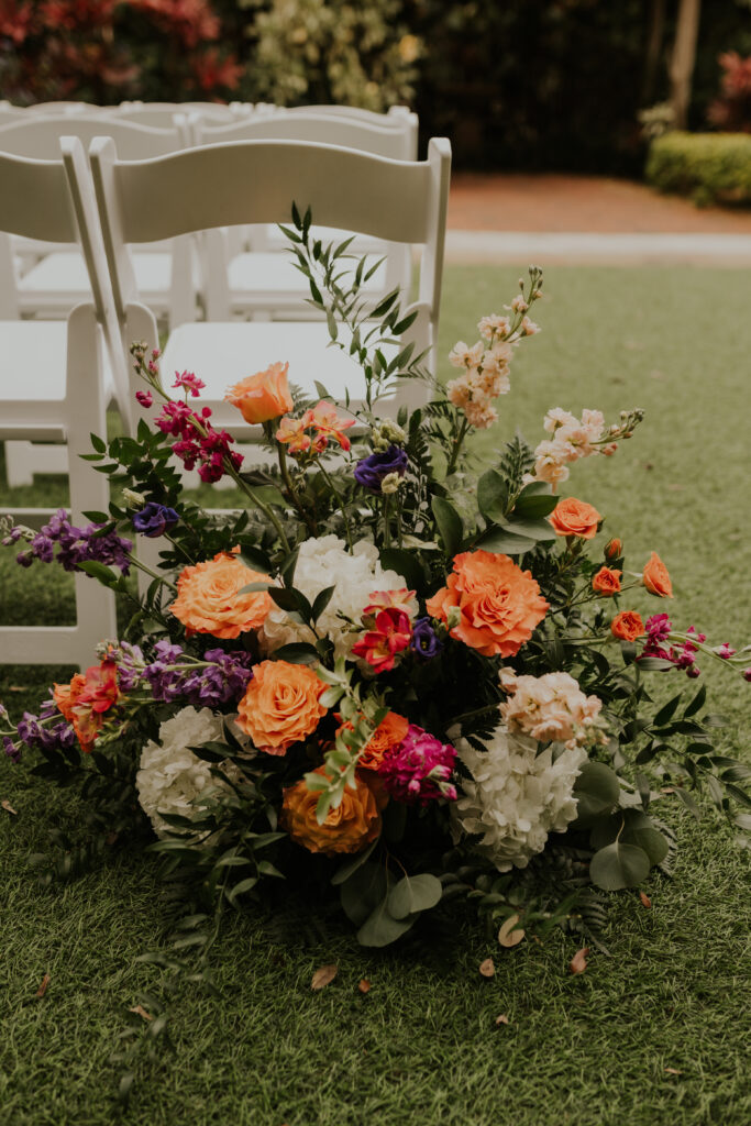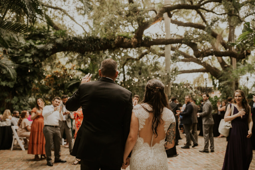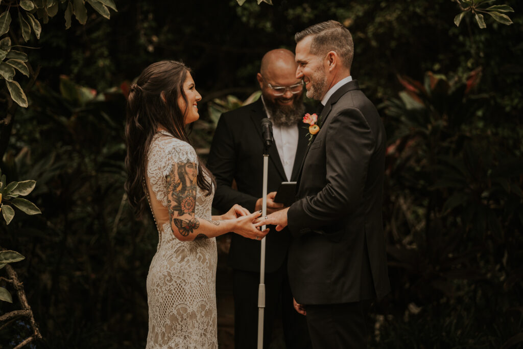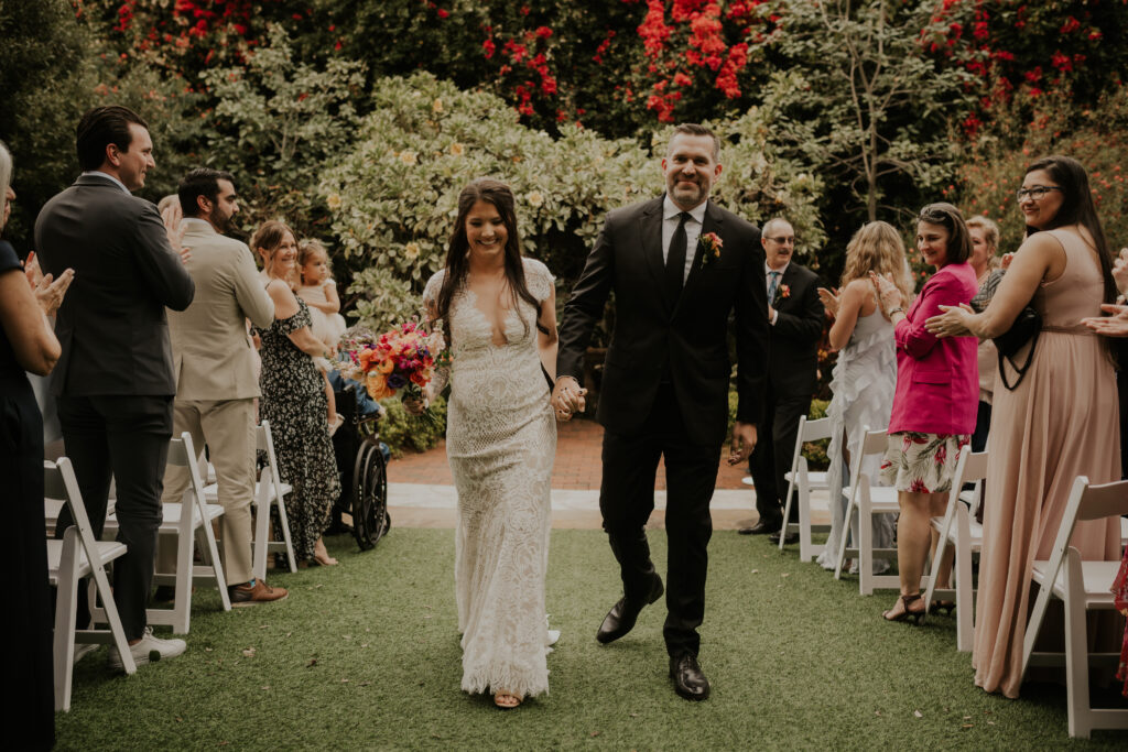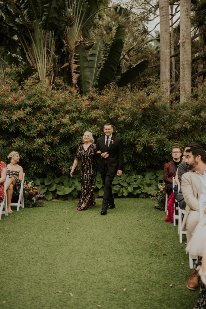 The day began under the towering palms and amidst the vibrant blooms of the Sunken Gardens. Renowned for its beauty and tranquility, this gorgeous venue offered an idyllic scene for Jessica and Chris as they exchanged their vows, perfectly encapsulating the essence of a garden wedding.