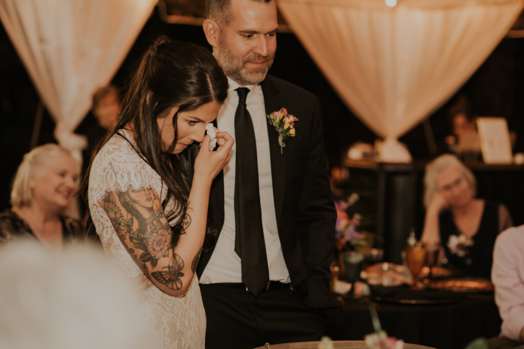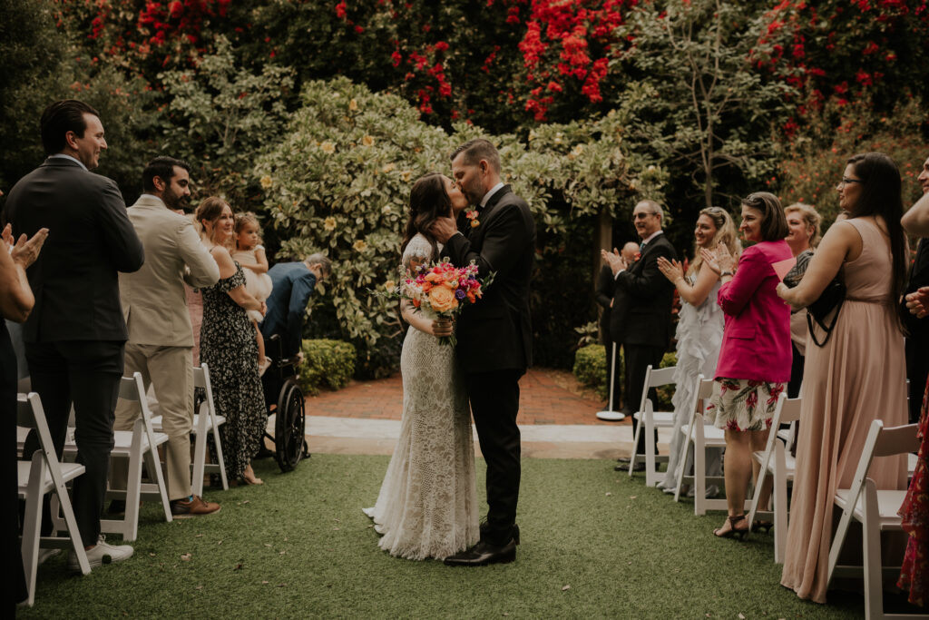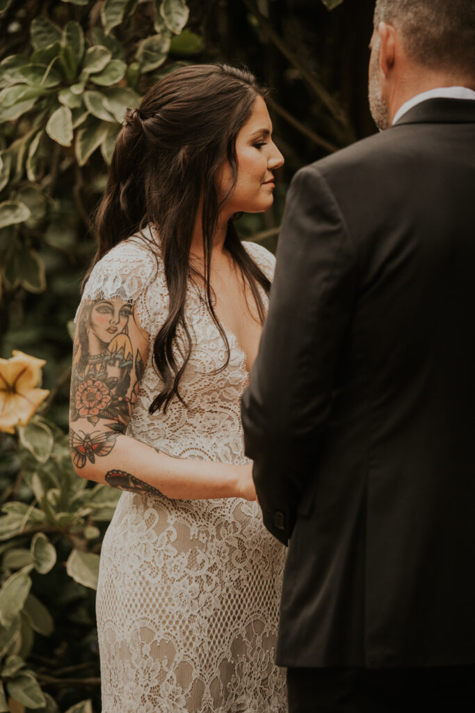 Moreover, throughout the wedding at the Sunken Gardens, Jessica and Chris shared numerous sweet moments that highlighted their deep connection and joy. From their first look, where tears and smiles were abundantly shared, to gentle caresses exchanged during their vows, their love for each other was palpable. These tender interactions not only captured the hearts of everyone present but also beautifully illustrated their love story.