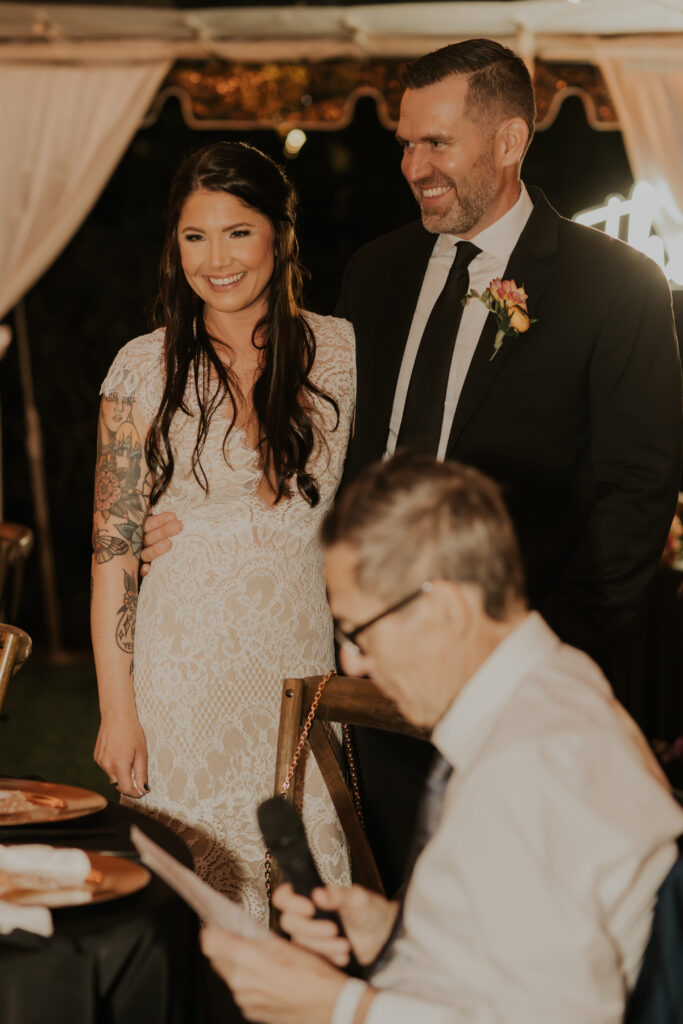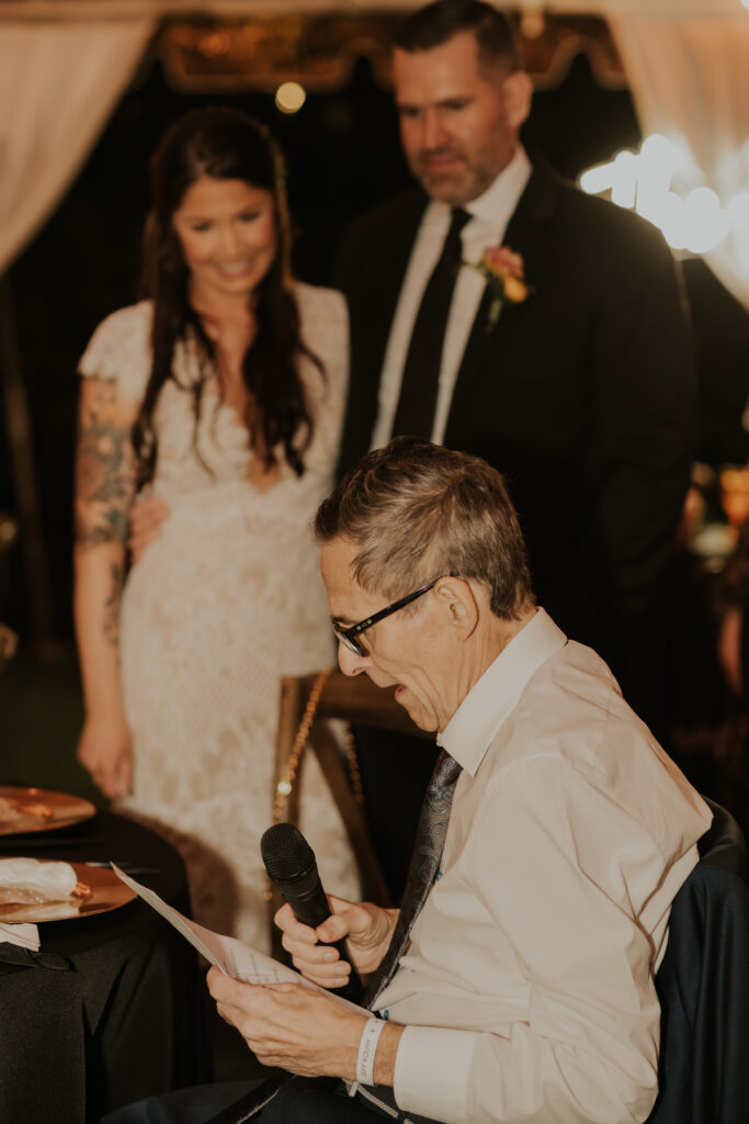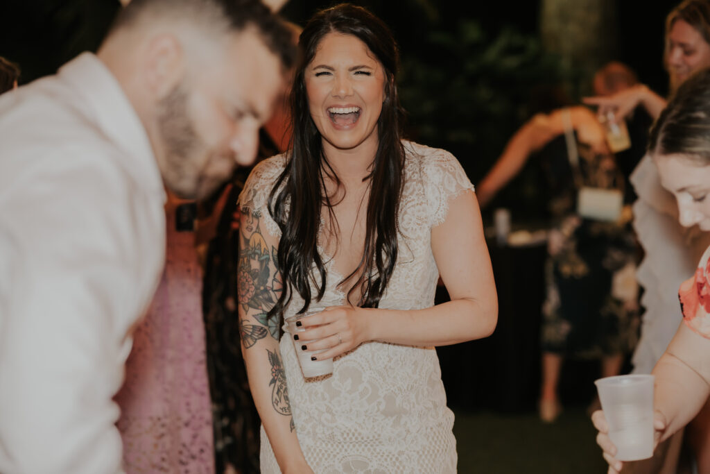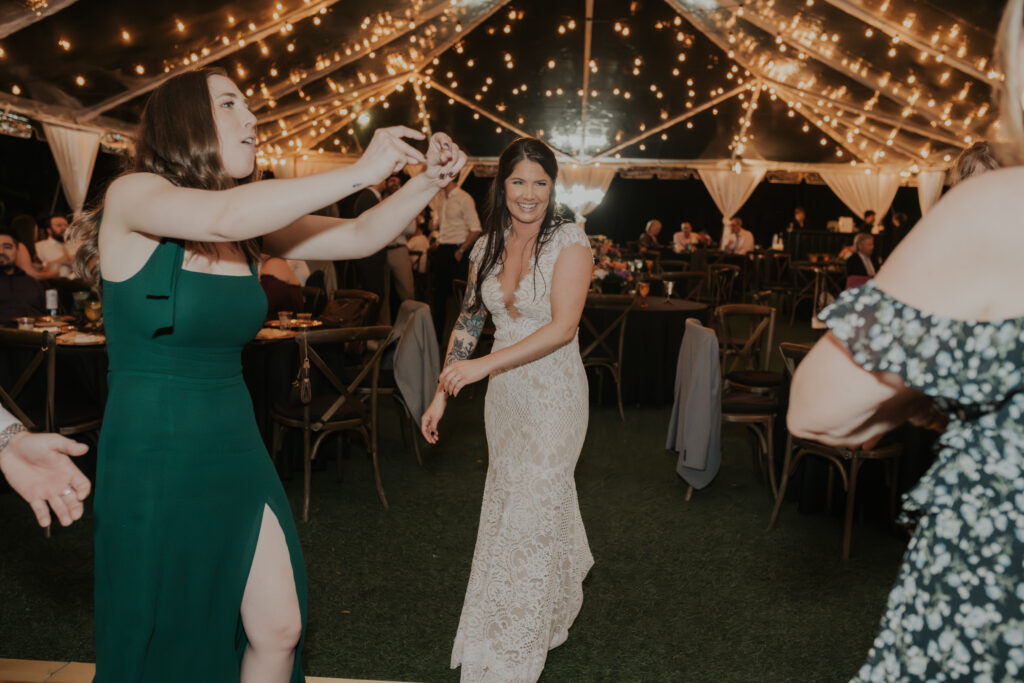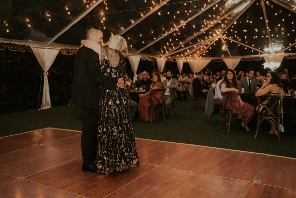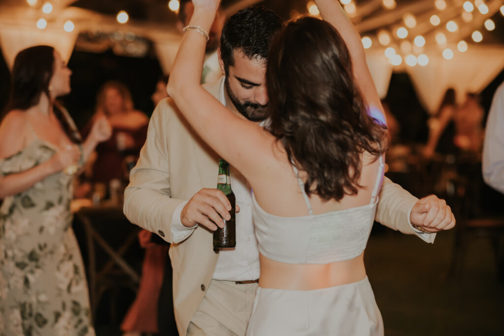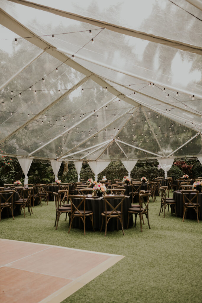 Furthermore, the reception, held within the same lush surroundings, continued the theme of intimacy and elegance. As the evening progressed, the gardens transformed under the glow of string lights, creating a magical atmosphere that enhanced the romantic setting. The couple and their guests danced the night away, surrounded by the natural beauty of the Sunken Gardens, celebrating the new chapter in Jessica and Chris’ lives.