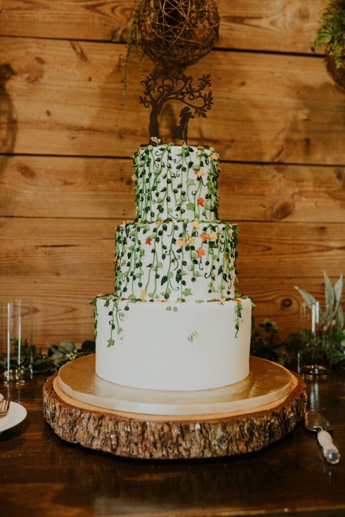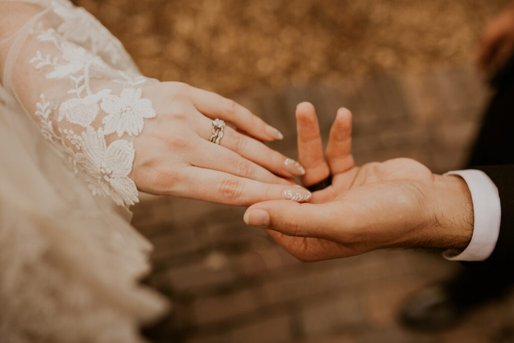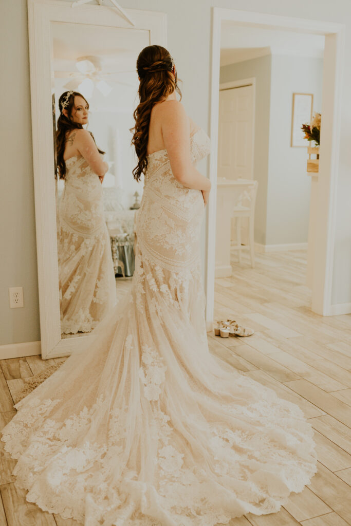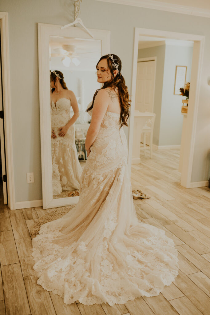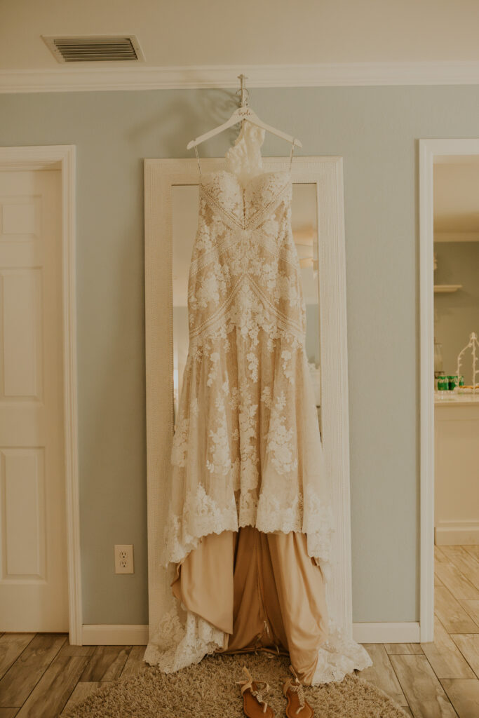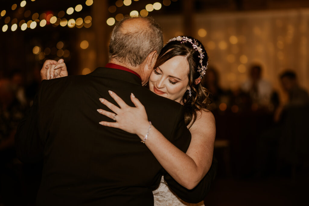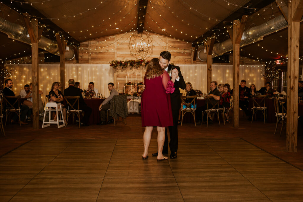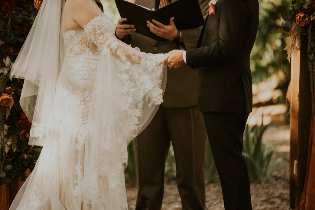 The decor was a spectacular showcase of the season, featuring beautiful fall colors that transformed Cross Creek Ranch into an elegant garden fairy-like setting. Breanne’s dress, along with the floral arrangements and other decorations, were thoughtfully chosen to reflect this theme, combining to create a stunningly picturesque environment. The rich hues of oranges, reds, and golds in the florals beautifully complemented the natural beauty of the venue, while elegant touches throughout the space enhanced the fairy-tale feel of their wedding.