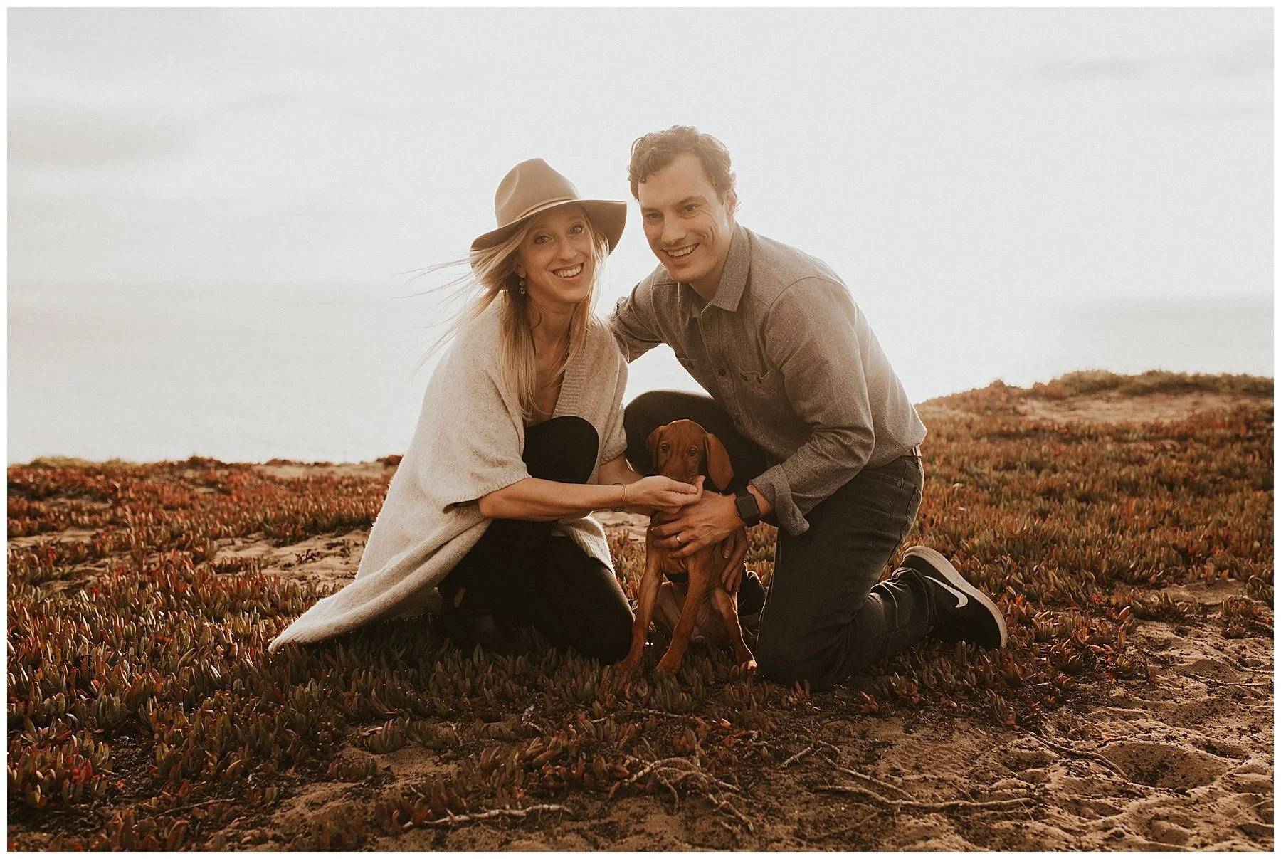 Getting to capture these two for their anniversary was so beautiful! They brought along their puppy, River, who stole my heart! Finding Mussel Rock Park with the cliffs overlooking the ocean was breathtaking. Then we hiked down to the beach and got our toes wet, and ran through the sand while the sunset in the background. I am so humbled when I get couples who trust me, and all I can do- while having so much fun while doing so! Side note- always bring your fur babies to shoots! Nothing makes us photographers happier!